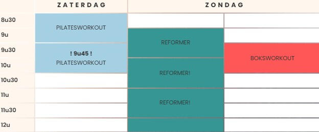 >Ingeplande reformerlessen in het reserveringssysteem: 2,5 credits