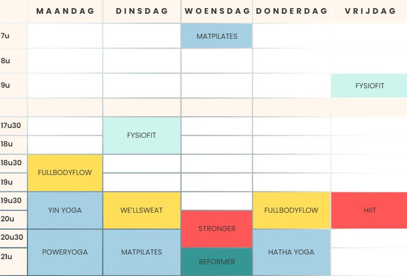 Wij bieden sinds kort ook reformerlessen in groepjes van 3 personen aan.Deze kan je reserveren op de ingeplande momenten via volgende link: